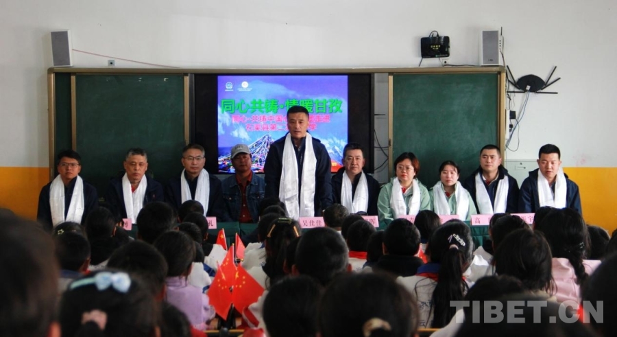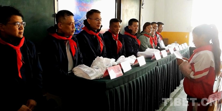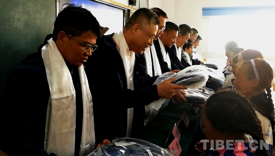 圖為(wei) 醫療專(zhuan) 家們(men) 向四川省甘孜州石渠縣第二完全小學學生贈送學習(xi) 用品 攝影:劉莉