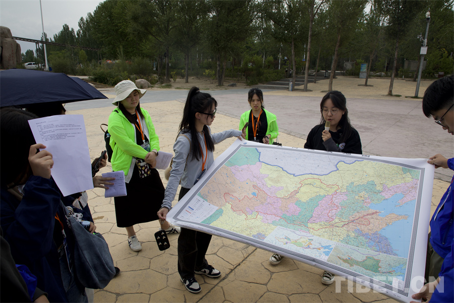圖為(wei) 青海省自然教育協會(hui) 的老師給香港青少年講解黃河生態方麵的知識 攝影:桑吉