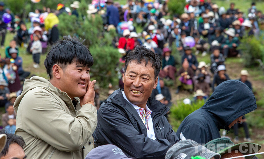 圖為(wei) 活動現場的農(nong) 牧民群眾(zhong) 觀看演出和比賽