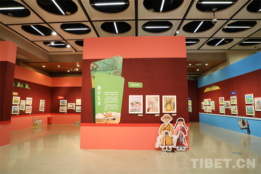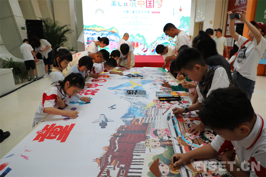 此次活動邀請西藏、深圳、上海、北京等地400餘(yu) 名兒(er) 童圍繞“家園”“祖國”“生態”“未來”等題目創作了592幅作品,遴選出213幅展出。這些充滿生命色彩和奇妙想象的作品,圍繞西藏自治區在新時代的蓬勃發展,以確保國家安全和長治久安、高質量發展、保護生態環境以及強化邊疆建設為(wei) 主旨,呈現了孩童心中璀璨絢爛的中國夢。