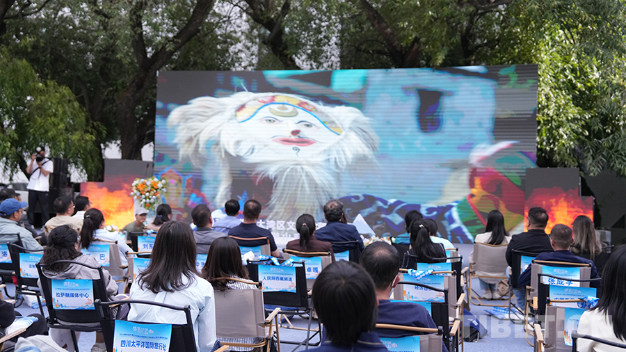 圖為(wei) 現場嘉賓觀看山南的宣傳(chuan) 片 攝影:德吉卓瑪