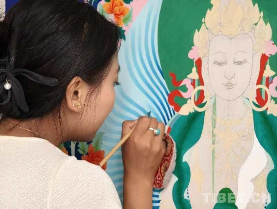 圖為(wei) 熱貢畫院的畫師在繪畫 攝影:陳錦順