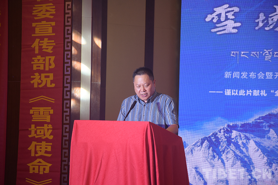 圖為(wei) 安徽省第一批援藏幹部、《雪域使命》總出品人、製片人舒友忠發言 攝影:德吉卓瑪