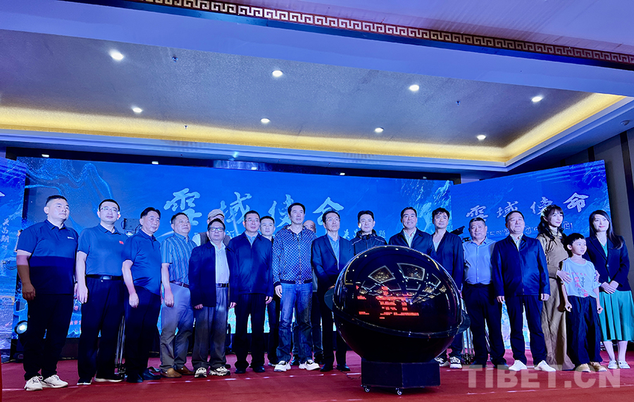 圖為(wei) 《雪域使命》主要演員同與(yu) 會(hui) 嘉賓共同舉(ju) 行開機揭幕儀(yi) 式並合影留念 攝影:德吉卓瑪