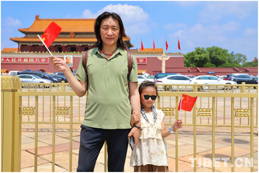 圖為(wei) 澤多和澤丹父女倆(lia) 在天安門前合影 攝影:龍真多吉