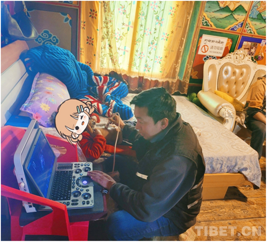 圖為(wei) 德格縣疾病預防控製中心工作人員為(wei) 澤丹檢查 圖片由受訪者提供