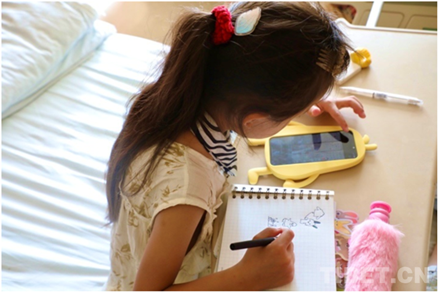 記者了解到,澤多家裏共有4個(ge) 孩子,小澤丹在四個(ge) 兄弟姐妹中排行老三,也是家中最好學的孩子。在醫院病房裏,小澤丹拿著一本自己專(zhuan) 屬的筆記本,反複在上麵寫(xie) 著自己的漢文和藏文名“澤丹(ཚེ་བརྟན།)”。有時她也會(hui) 照著手機裏的圖片,一筆一劃有模有樣地勾勒出各種圖案。