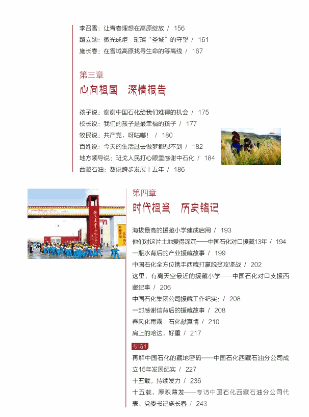 圖為(wei) 《中國石化在西藏》書(shu) 籍目錄(部分)