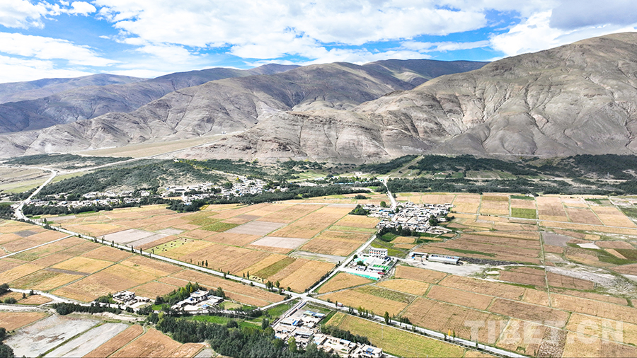 圖為(wei) 隆子縣萬(wan) 畝(mu) 黑青稞基地(航拍圖) 攝影:次仁羅布