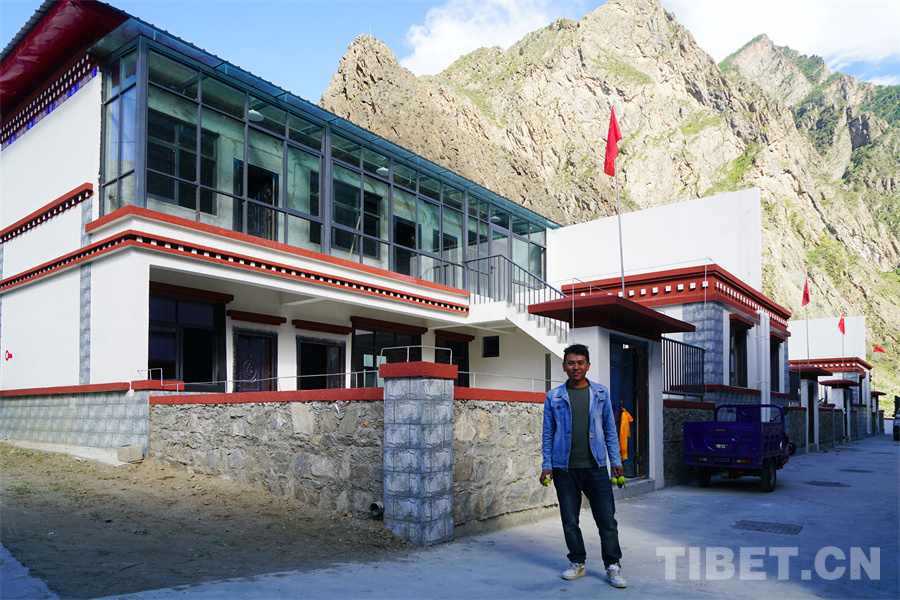 圖為(wei) 邊境村東(dong) 雄村村民普布次仁與(yu) 自己的新房 攝影:趙振宇