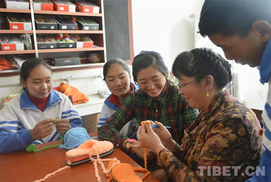 圖為(wei) 次仁拉姆教孩子們(men) 做手工