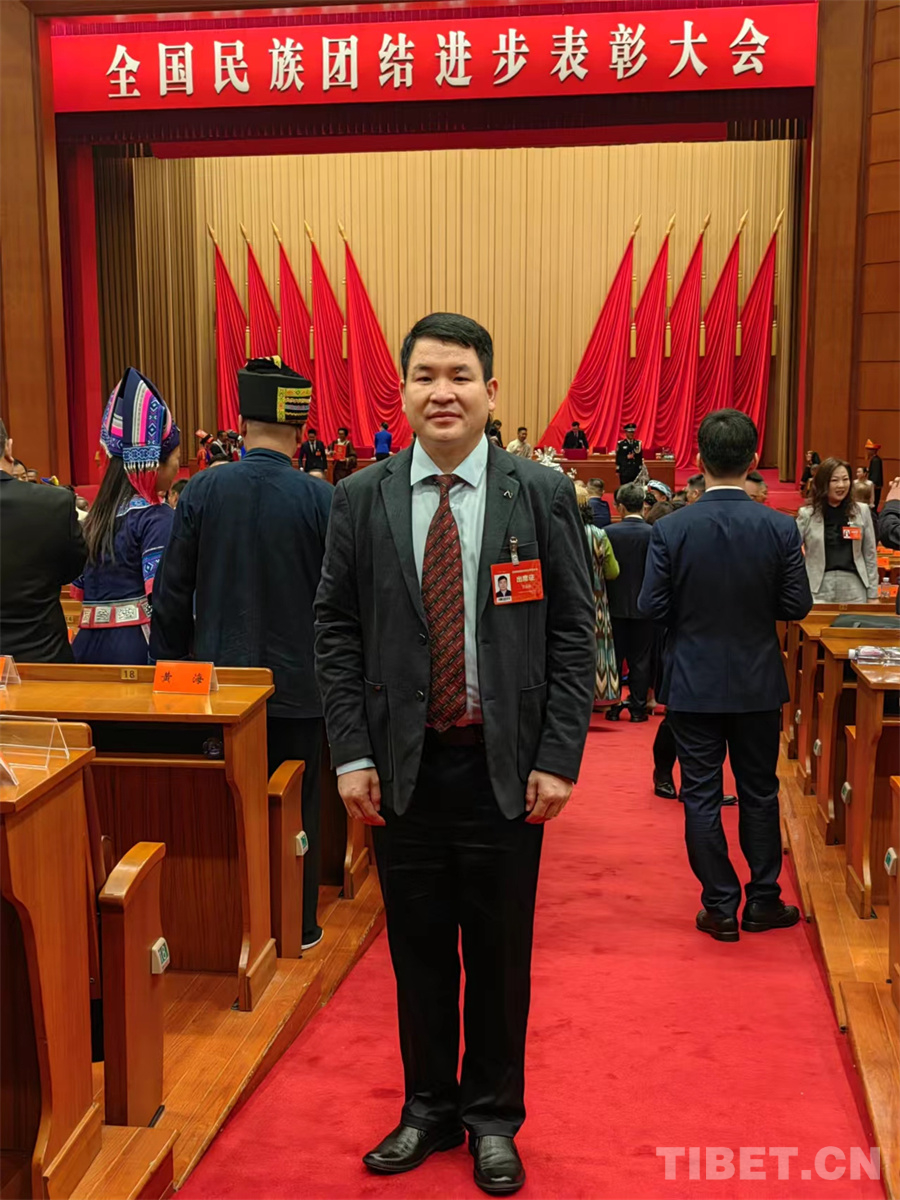 圖為(wei) 丁玉珂以“全國民族團結進步模範個(ge) 人”身份出席全國民族團結進步表彰大會(hui) 受訪者供圖