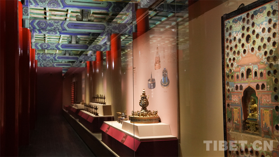圖為(wei) 2023年於(yu) 故宮博物院舉(ju) 辦的“祥開萬(wan) 象——故宮與(yu) 西藏文物聯展”展廳現場 攝影:趙振宇