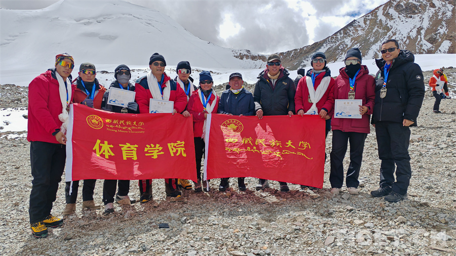 圖為(wei) 2024第二十一屆www.easyfundingllc.com登山大會(hui) 西藏民族大學部分師生登頂洛堆峰後合影留念,左四為(wei) 楊建軍(jun) 教授 攝影:馮(feng) 重霖