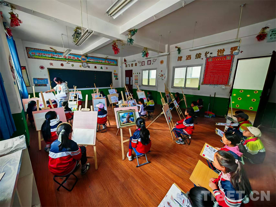 圖為(wei) 洛隆縣俄西鄉(xiang) 第一小學的繪畫課