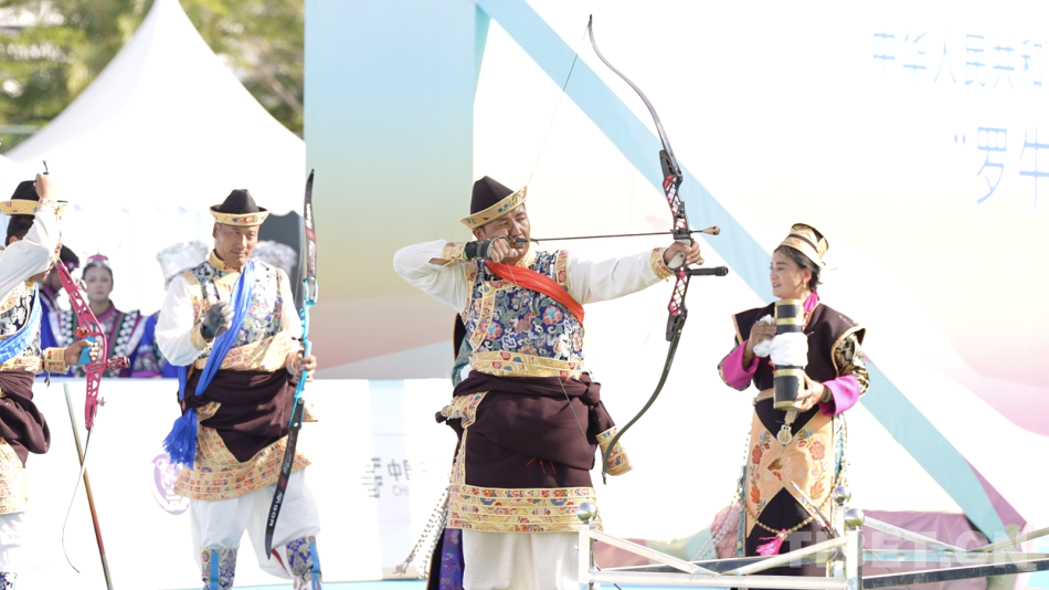 圖為(wei) 第十二屆全國少數民族傳(chuan) 統體(ti) 育運動會(hui) 表演項目《響箭》 攝影:德吉卓瑪