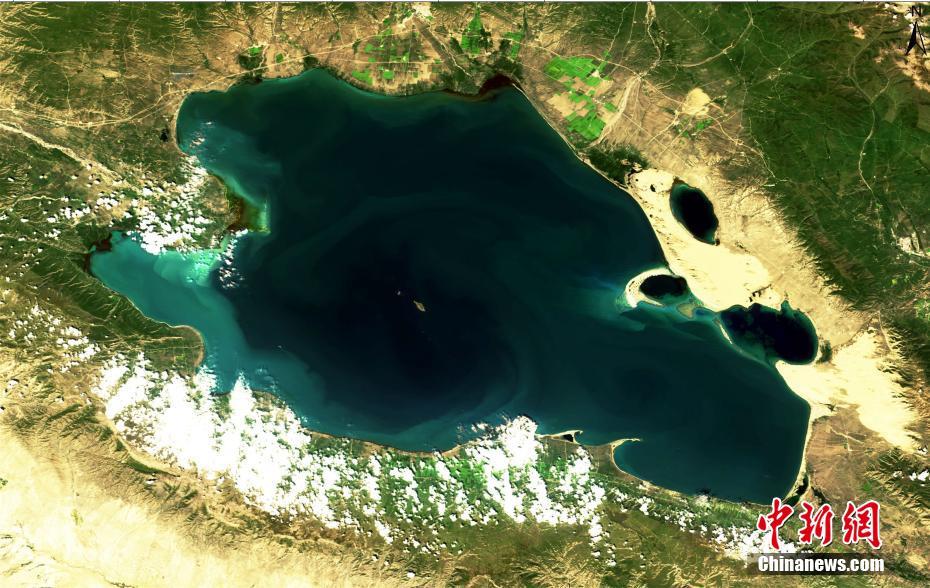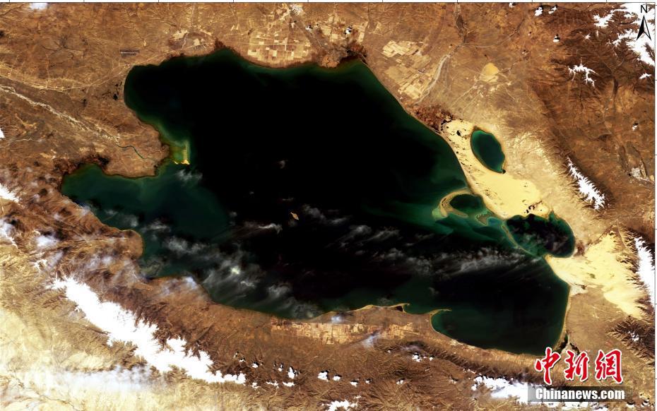 圖為(wei) 2019年5月13日遙感監測的青海湖水體(ti) 深綠,草色枯黃。青海省地質調查院 供圖