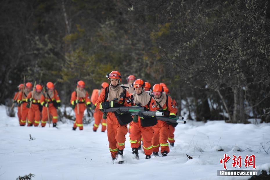 1月18日,迪慶森林消防員在重點防控區域巡護。迪慶藏族自治州地處的橫斷山區河流縱橫、山高穀深、氣候高寒,屬生態脆弱地帶。中新社記者 劉冉陽 攝