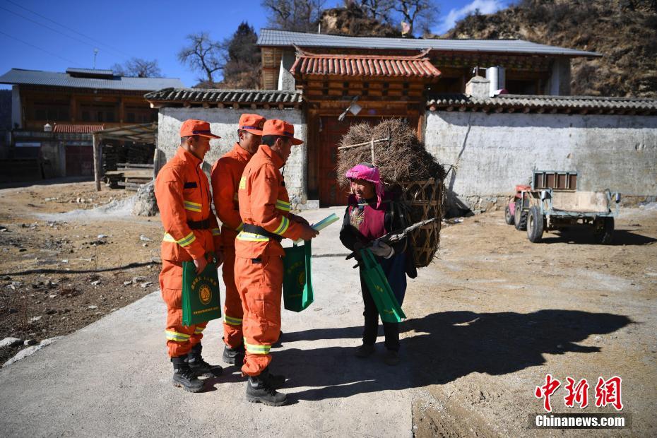 迪慶森林消防員進村進行防火宣傳(chuan) 。中新社記者 劉冉陽 攝