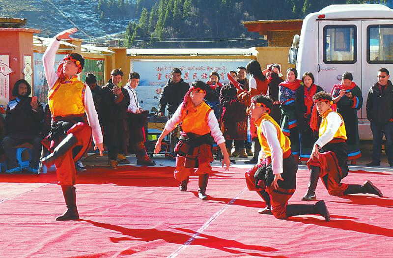 “我們(men) 3天前就開始排練節目,有縣上的老師指導,每天要練5個(ge) 小時……”吉拉村村民活動中心二樓,正在化妝的紮各措告訴記者,她家曾是貧困戶,如今已經脫貧。前段時間,父親(qin) 聽說要辦“脫貧春晚”,馬上給她報名參加演出,說脫貧要感謝黨(dang) 和政府,這樣的活動一定要參加。