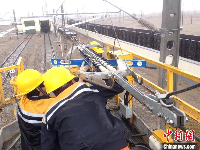圖為(wei) 中國鐵路青藏集團有限公司西寧供電段格爾木接觸網大修工區的接觸網工對分段絕緣器進行測量。周賀 攝