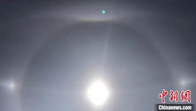 據中國氣象局高級工程師卞贇介紹稱,該現象為(wei) 幻日,且十分罕見,需要滿足的氣象條件十分苛刻,並且持續時間很短。