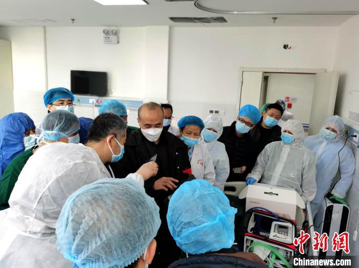 圖為(wei) 青海醫療隊查看醫療物資。青海大學附屬醫院 攝
