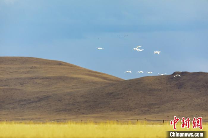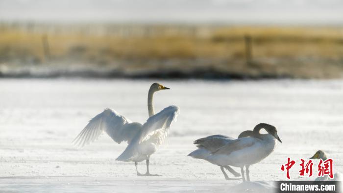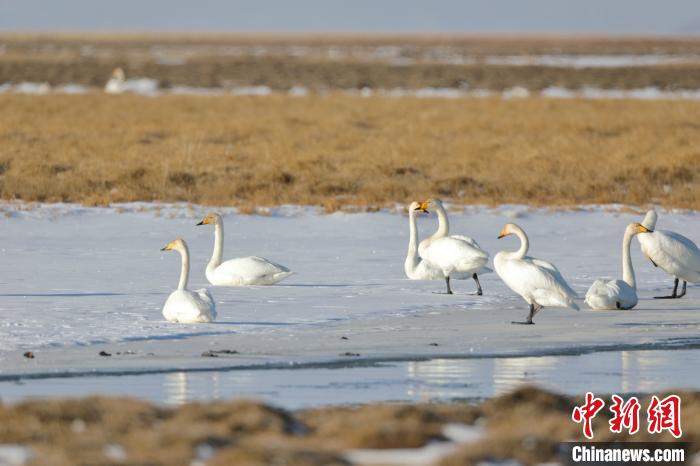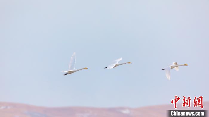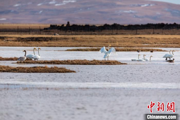 從(cong) 西伯利亞(ya) 飛來的大天鵝。若爾蓋縣融媒體(ti) 中心供圖 攝