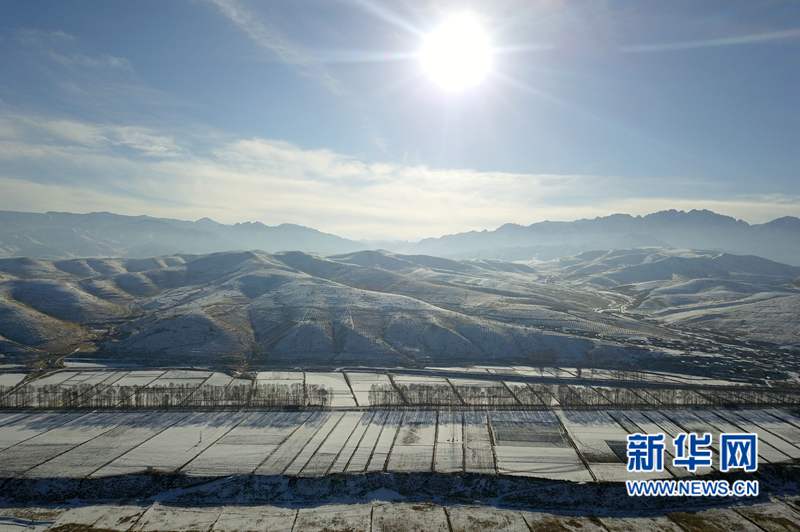 這是1月13日在甘肅省武威市天祝藏族自治縣境內(nei) 拍攝的祁連山下冬日景色(無人機照片)。新華社記者 範培珅 攝