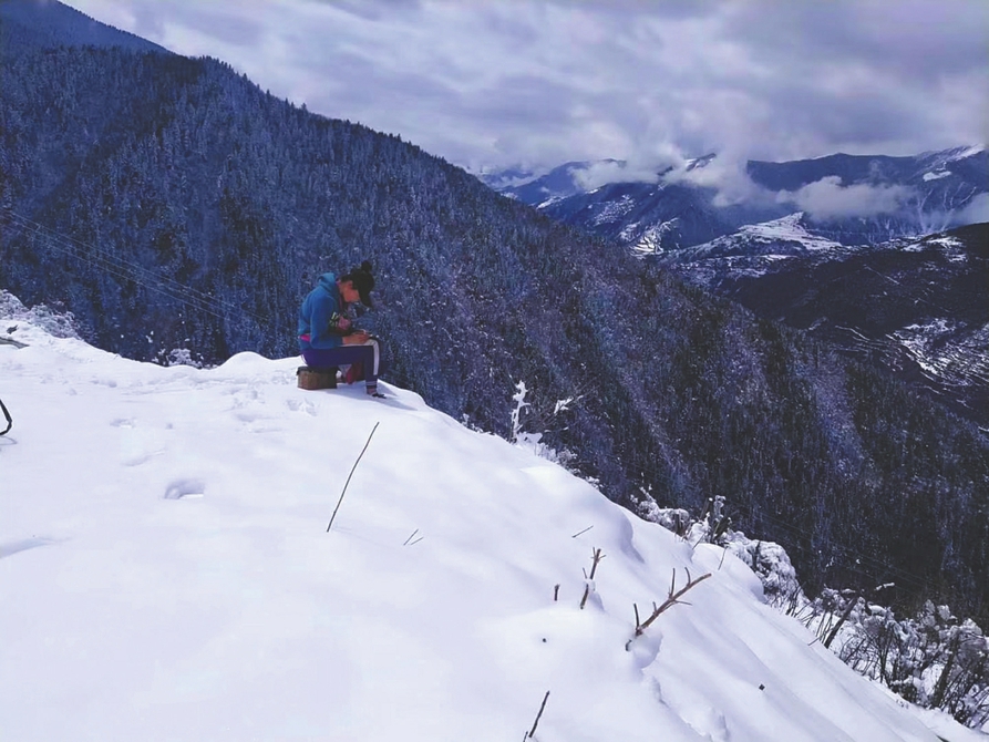 當天上午,胡誌萍不僅(jin) 要上網課,還要按照學校要求填寫(xie) 每日健康情況表,可是家附近到處都找不到網絡信號,怎麽(me) 辦?“我到處走到處找,在離家800米的那座雪山上,終於(yu) 找到信號。”
