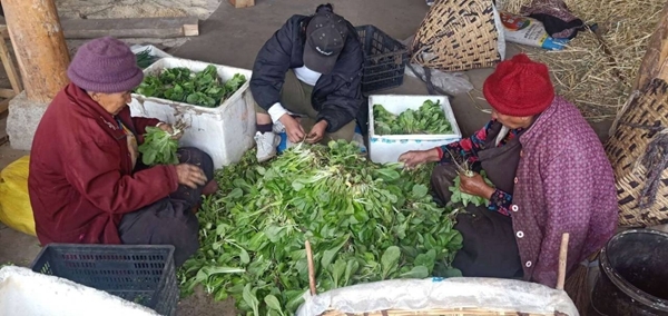 “年前灑下的種子,這幾天正是收獲的季節,在農(nong) 貿市場裏,本地小白菜都是以捆綁的把數售賣,一把可賣一元多錢,今天的兩(liang) 背篼菜估計可以賣500多元,自己的一畝(mu) 地15天可以賣完。”木朗格絨介紹說,雖然辛苦點,但收入還算不錯,每天賣菜回來還可以做其他農(nong) 活。