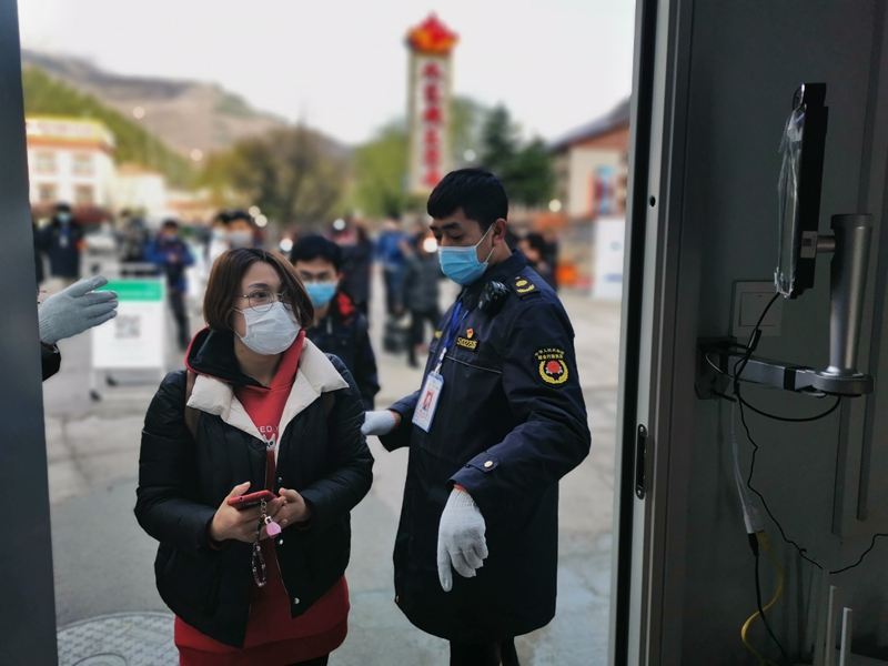 在現場,遊客們(men) 均按照要求,間隔安全距離排隊。但與(yu) 以往排隊入園不同的是,現場除了驗票,工作人員還會(hui) 檢測體(ti) 溫並檢查有無佩戴口罩。記者了解到,遊客將統一在藍天停車場臨(lin) 時遊客中心乘坐觀光車進入景區,且全程必須佩戴口罩,保持安全距離,並服從(cong) 景區檢測點體(ti) 溫檢測等。景區對未持身份證件和未按規定佩戴口罩的遊客,將按照疫情防控期間相關(guan) 規定,拒絕辦理入園手續。
