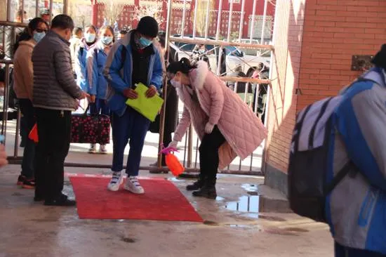 早晨八點三十分,學生陸續到校,學校各部門按照前期演練的程序有序組織學生進校。班主任在學生整隊等待區整隊、學生遞交返校監控資料、鞋底消毒、手部消毒、領取新口罩、回收舊口罩、體(ti) 溫檢測、洗手、入班再檢測體(ti) 溫、宣講新型冠狀病毒感染肺炎防控知識,各個(ge) 環節緊湊有序。185名高三學生沒有出現任何身體(ti) 不適和體(ti) 溫異常情況,實現了有序安全返校。