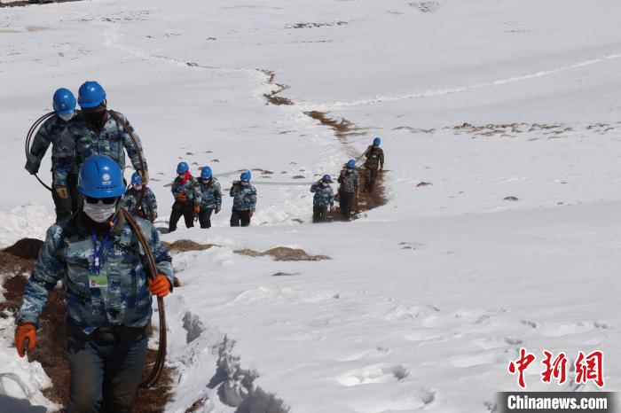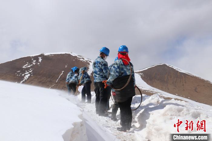 越往山頂走,積雪越厚,再加上高海拔缺氧,看似很短的距離,卻走了很長時間,等積雪快要淹沒膝蓋的時候,一條人工挖掘的U型通道出現在半山腰。“這是我們(men) 的施工隊3天前開始挖的,因為(wei) 積雪太厚,騾馬隊無法負重前行,我們(men) 首要的任務便是挖開一條通向塔基的路”韓建青介紹道。