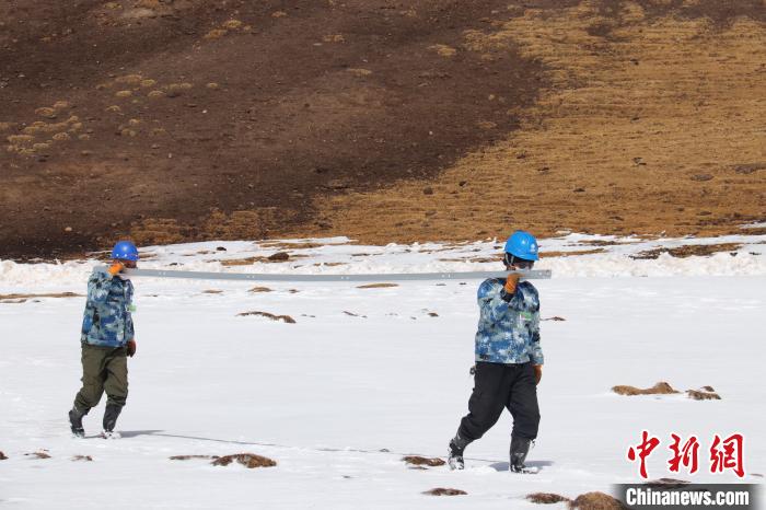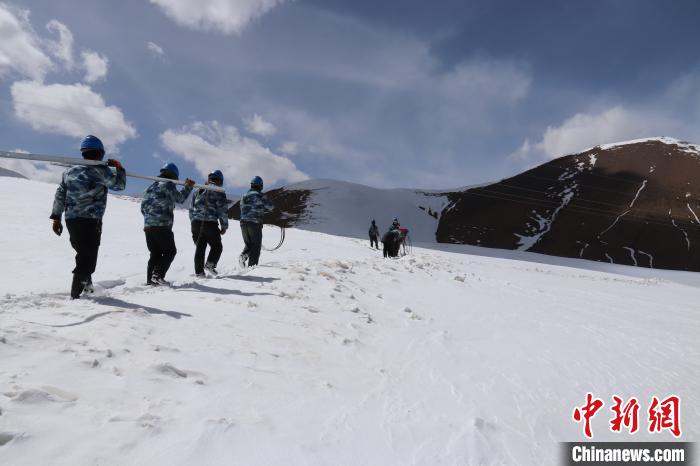 青海省玉樹藏族自治州稱多縣境內(nei) 的覺頂山山頂海拔5310米,“三區兩(liang) 州”玉樹地區電網工程建設稱多110千伏輸變電二回線路將在這裏組立一基鐵塔。4月10日,天剛蒙蒙亮,項目負責人韓建青便帶著施工隊徒步趕向位於(yu) 半山腰的塔基處。積雪已經淹沒了腳踝,一腳踩下去,能清晰的感受到冰雪觸及皮膚帶來的刺痛。“要想到達塔基處可不容易啊,看到我們(men) 背的鐵鍬了嗎,那不是挖地的,那是開路用的。”年近40歲的韓建青氣喘籲籲地說。