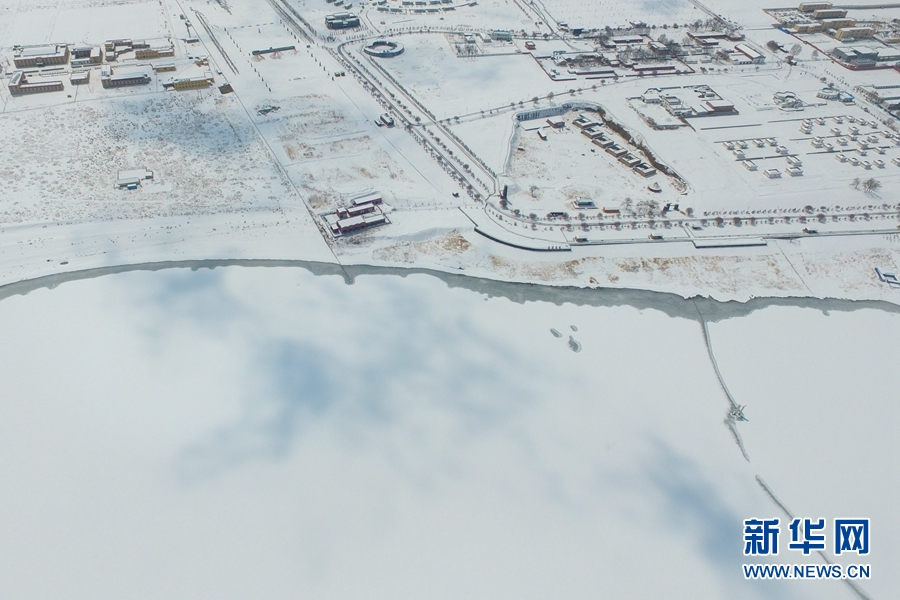 一場春雪,為(wei) 青海湖披上了潔白的外衣(4月7日攝)。新華網 潘彬彬 攝