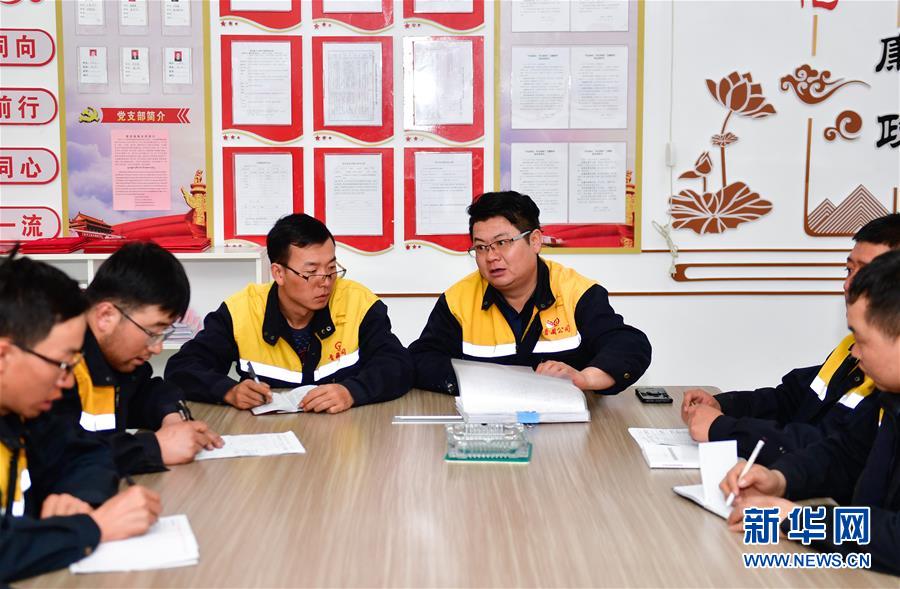 1月11日,在青藏鐵路望昆站,於(yu) 本蕃(右三)召集工友開會(hui) 商定施工方案。新華社記者 張龍 攝