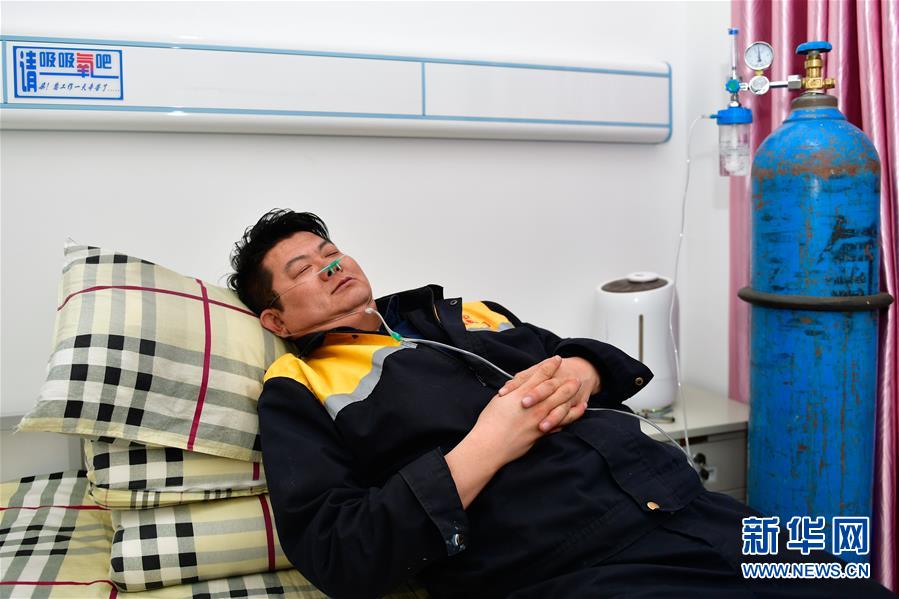 1月11日,在青藏鐵路望昆站,於(yu) 本蕃在宿舍裏吸氧休息。新華社記者 張龍 攝