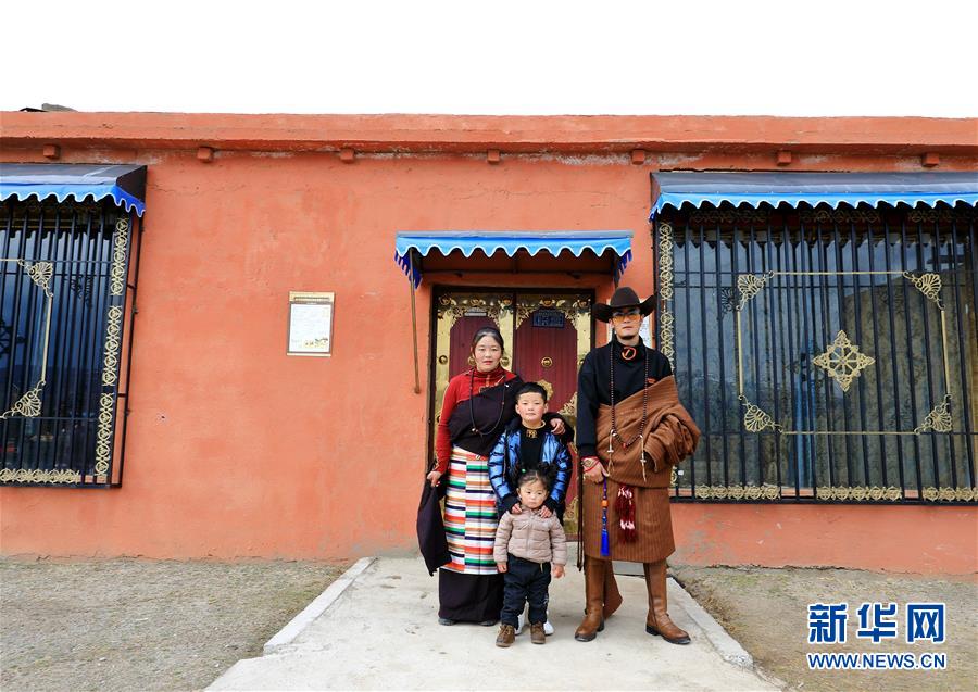在四川甘孜藏族自治州理塘縣村戈鄉(xiang) 芒康村,村民降央斯郎一家在拍攝全家福(3月22日攝)。 新華社發