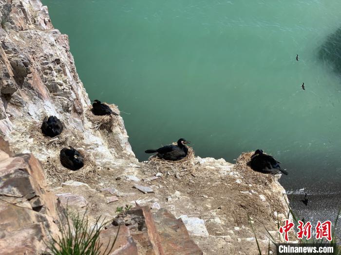 圖為(wei) 鸕鶿島內(nei) 正在築巢的鸕鶿。李江寧 攝