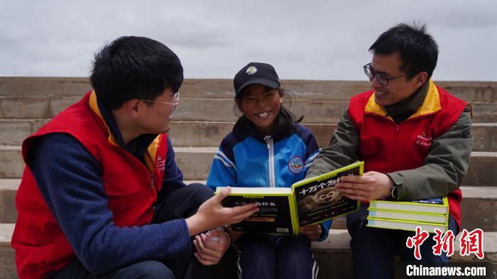 圖為(wei) 黨(dang) 員服務隊隊員與(yu) 孩子一起閱讀書(shu) 籍。昂尕 攝