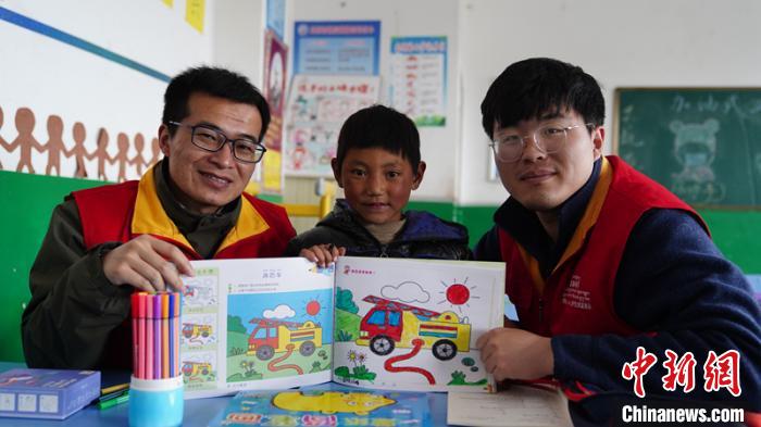 圖為(wei) 黨(dang) 員服務隊隊員與(yu) 孩子一起完成繪畫。 昂尕 攝