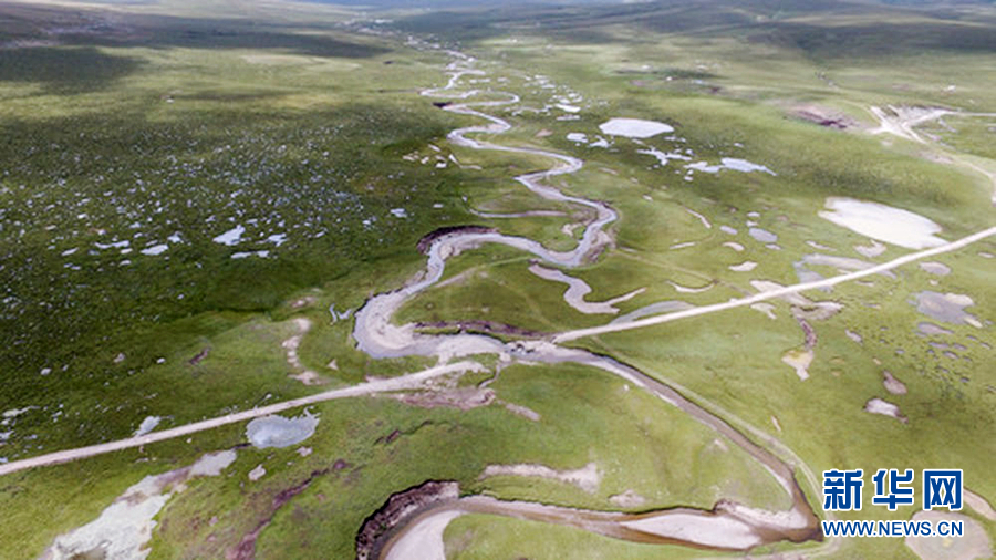 位於(yu) 青海省玉樹藏族自治州雜多縣的長江南源當曲河道(2019年8月6日無人機拍攝)。新華社 吳剛 攝