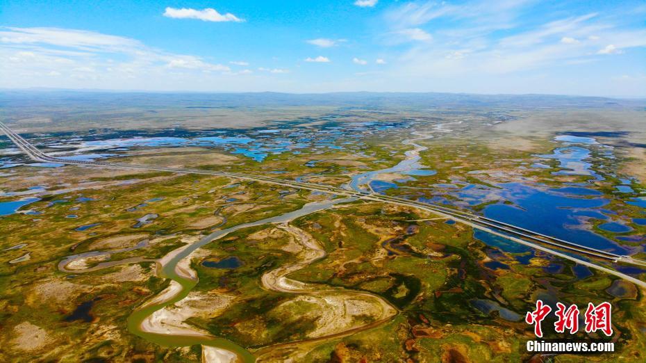 航拍黃河源頭星星海 色彩斑斕似調色板