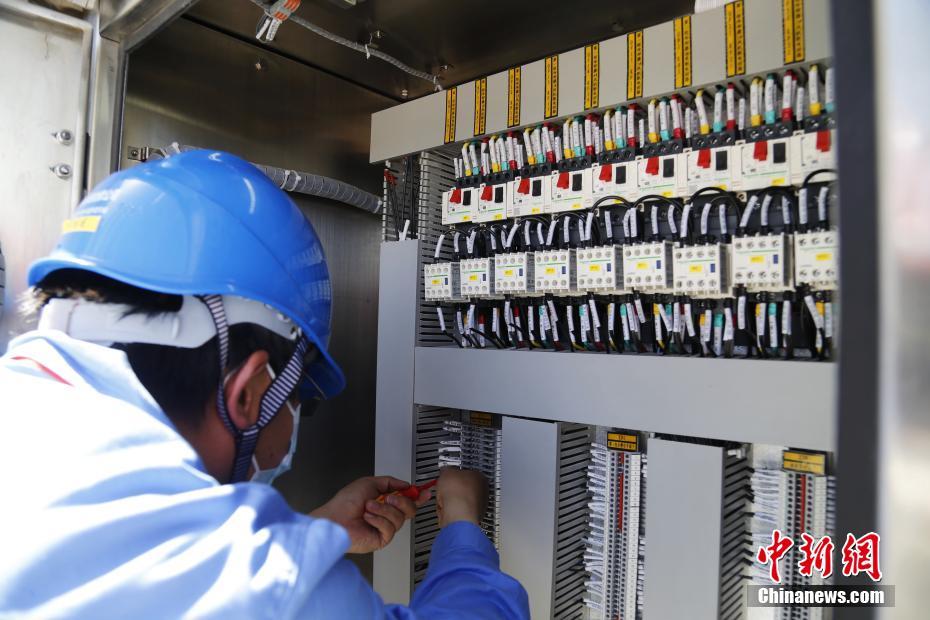 6月23日,在青海省海南藏族自治州共和縣±800千伏特高壓青南換流站,工作人員正在調試設備。中新社記者 馬銘言 攝