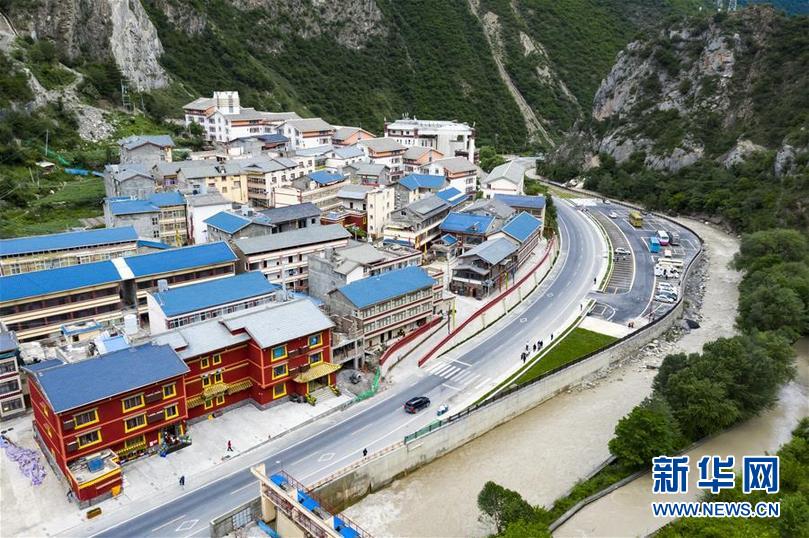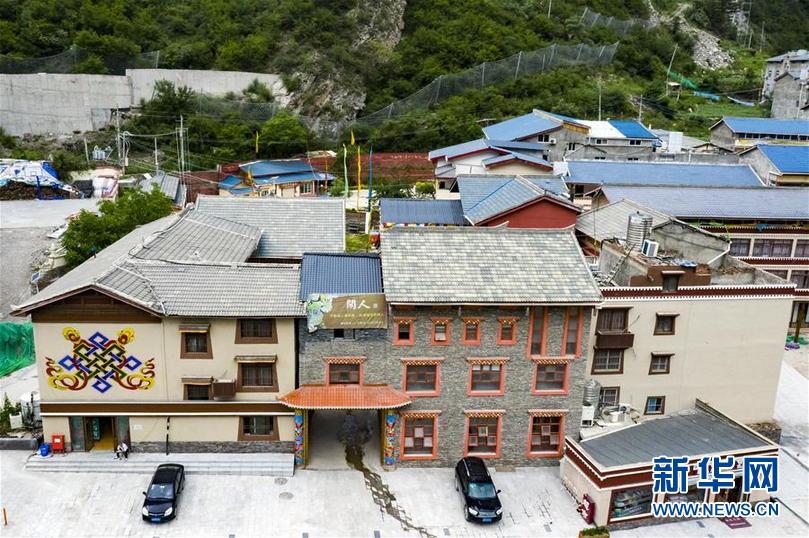 四川省阿壩藏族羌族自治州九寨溝縣漳紮鎮新建的用於(yu) 旅遊接待等功能的藏式風格民居(無人機照片,6月18日攝)。新華社記者 沈伯韓 攝