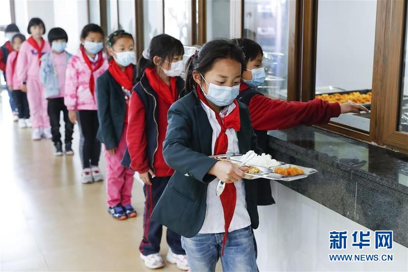 四川省阿壩藏族羌族自治州九寨溝縣九寨溝小學(原漳紮鎮小學)的學生在食堂排隊打飯(6月18日攝)。 新華社記者 沈伯韓 攝