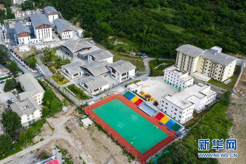 這是四川省阿壩藏族羌族自治州九寨溝縣九寨溝小學(原漳紮鎮小學)和九寨溝縣第二人民醫院(後)(無人機照片,6月18日攝)。 新華社記者 沈伯韓 攝