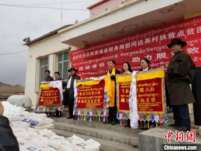 資料圖為(wei) 青海省稅務局扶貧工作領導小組成員赴達英村捐贈物資。國家稅務總局青海省稅務局供圖