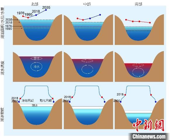 青藏高原湖泊水量、水溫、湖冰協同變化規律。(科研團隊 供圖)